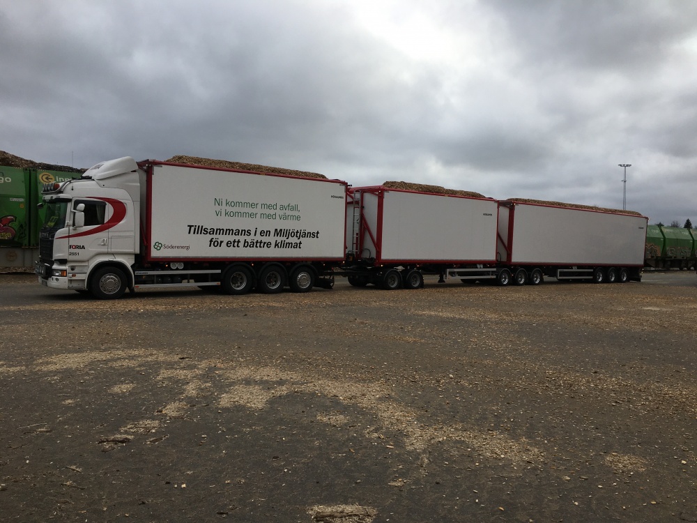 Då ska ni veta att det är ett av Sveriges längsta och tyngsta fordon i regelbunden trafik. Ekipaget är 34 meter långt och 98 ton tungt samt har 12 st hjulaxlar vilket minskar antalet transporter och med HVO100 i tanken så även fossilfritt. Ett steg närmare vårt miljömål att minska verksamhetens klimat- och miljöpåverkan.