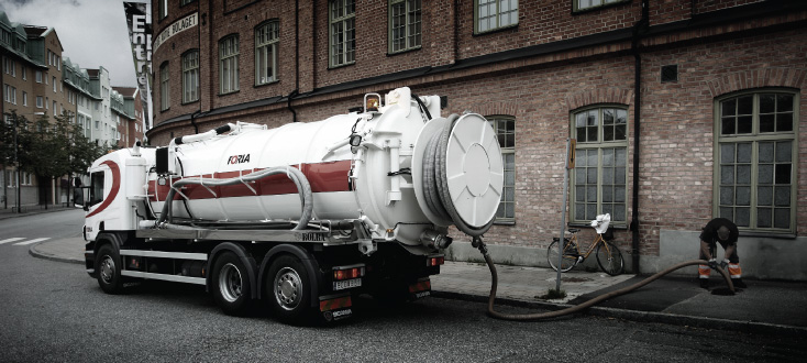 FORIA har specialfordon för slamsugning och högtrycksspolning. Vi utför tjänster som slamsugning av brunnar och tankar. Vi utför högtrycksspolning av alla olika ledningsdimensioner,inklusive rotskärning. Våra ”Jumbo” -enheter utför slamsugningsuppdrag över hela Sverige på mycket grova ledningar och flöden.
